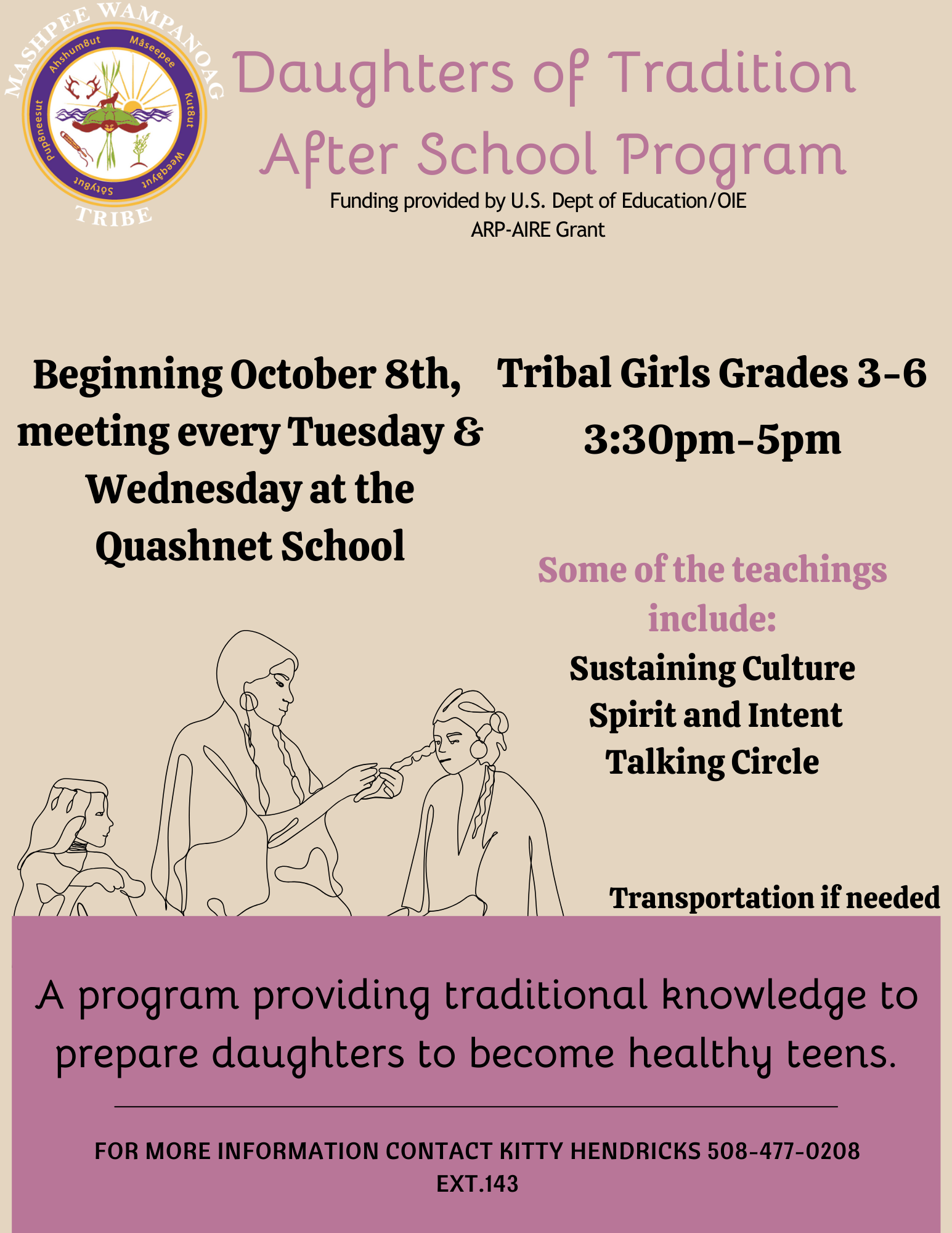 Daughters of Tradition is a program providing traditional knowledge to prepare daughters to become healthy teens.
